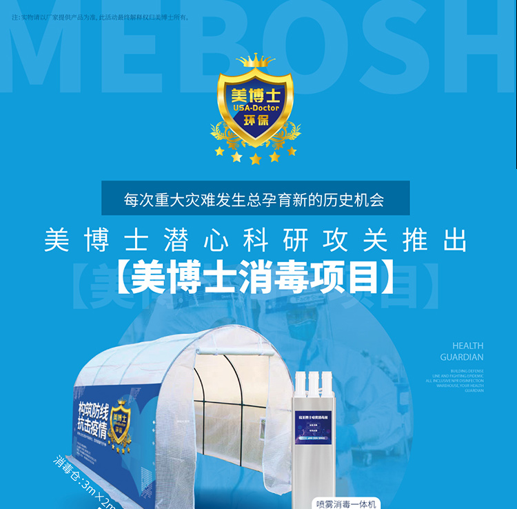 美博士環(huán)保消毒項目有效針對家庭消毒及室外公共區(qū)域消毒,疫情期間帶給您最安全放心的守護。