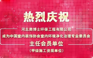 熱烈慶祝河北美博士環(huán)保工程有限公司成為中國室內裝飾協(xié)會室內環(huán)境凈化治理專業(yè)委員會主任會員單位。