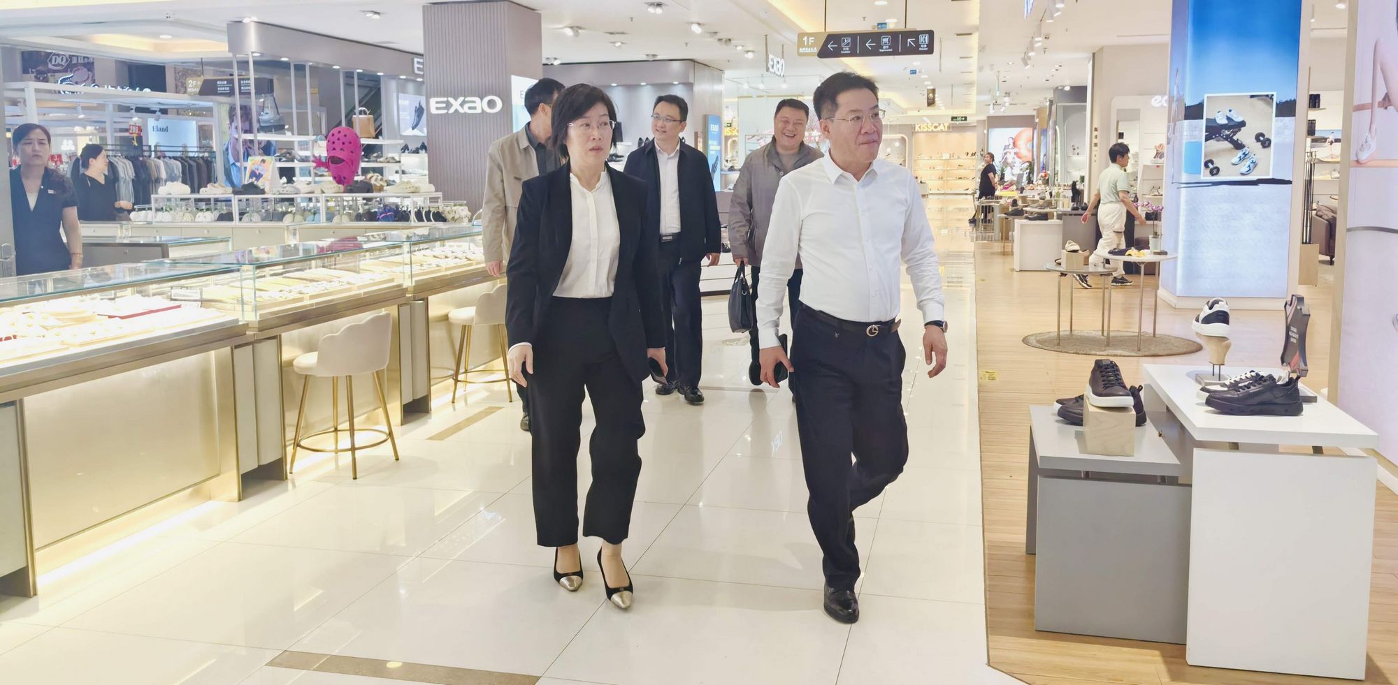 4月26日下午,臨沂市商務(wù)局黨組書記、局長程凱,黨組成員、副局長薛詠,商務(wù)發(fā)展服務(wù)中心副主任張劍等人一行到集團調(diào)研“五一”節(jié)前安全生產(chǎn)及助力外貿(mào)轉(zhuǎn)內(nèi)銷工作。集團董事長、黨委書記王楠楠,集團黨委副書記徐凱,九州商業(yè)大廈副總經(jīng)理、黨總支書記程永濤等陪同調(diào)研。